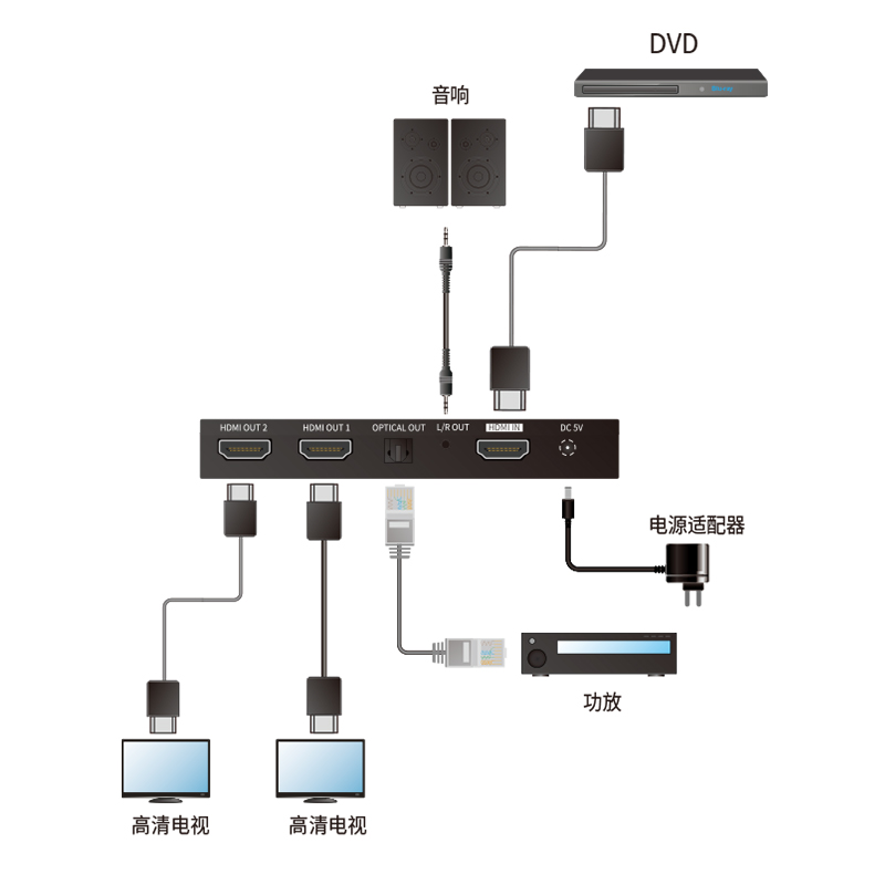 HDMI2.0 一进二出分配器 |