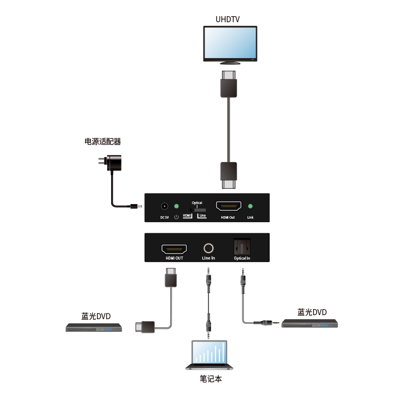 1x HDMl TypeA[19-pin母座] 1 xL/R音频端口[3.5mm Stereo Mini-jack] 1×光纤音频端口[Optical jack] |