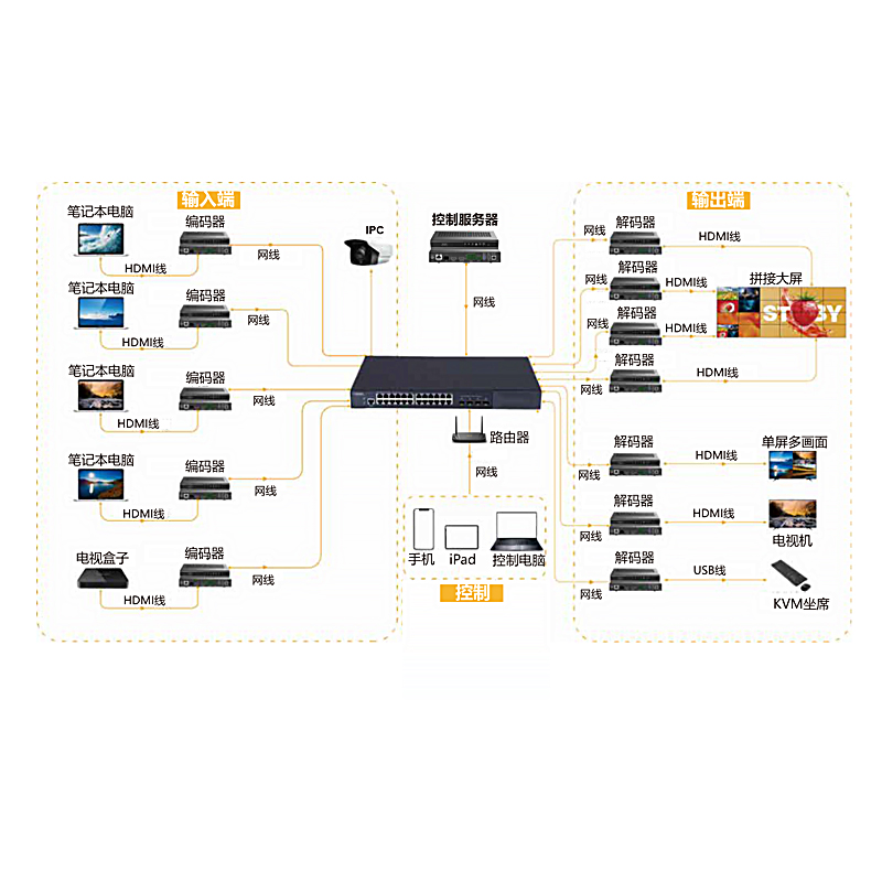 8, 提供6个LED指示灯,用于反馈当前设备编解码模式、网络连接状态、网络连接速率、系统状态(正常、待机、故障)以及电源状态(工作、待机或未上电)