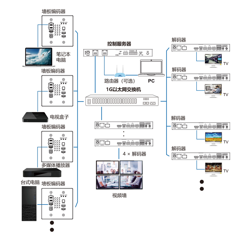 7, 支持单播、组播、虚拟矩阵、无缝切换、多屏拼接;
