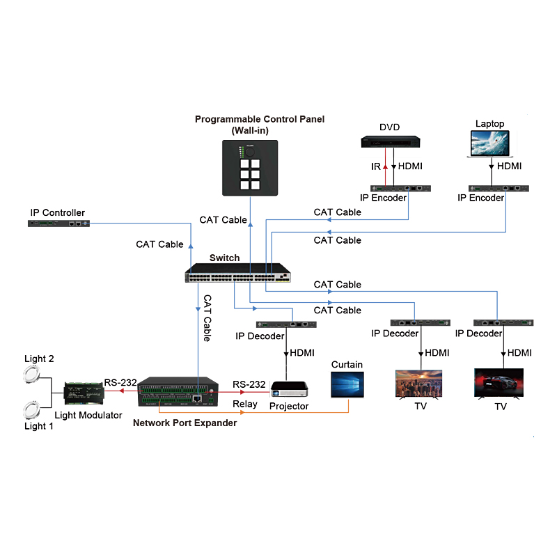 4, 4路双向 RS-232、1路双向 RS-485、2路低压 Relay、2路可配置为输入或输出的GPIO,以及2路支持20KHz~60KHz宽频的红外输出口