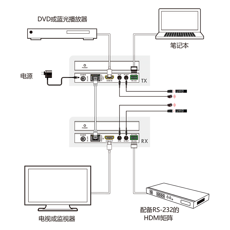 1, 采用 HDBaseT 技术,支持 HDMI2.0 4K@60Hz 4:4:4,兼容HDCP2.2 规范,标准模式最远4K信号70米,2K信号100米传输;