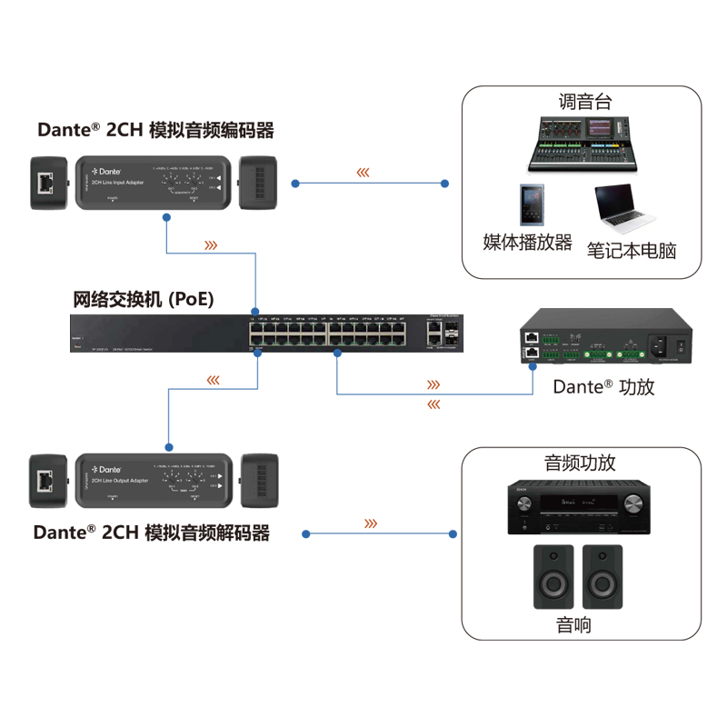 3, 可通过Dante®控制器配置1ms、2ms或5ms延迟