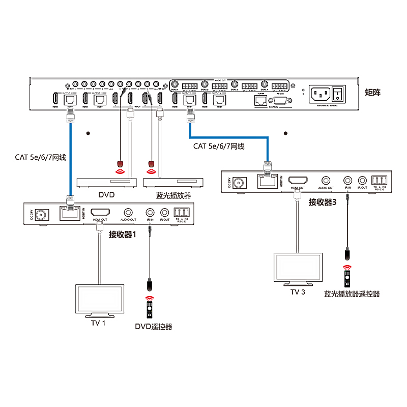 4K@60 ≥ 120米(HDBaseT),1080P@60 ≥ 150米(HDBaseT) |