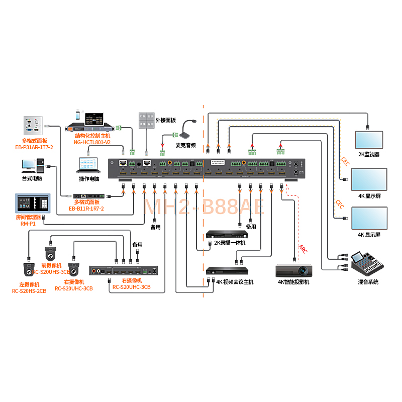 8x8 HDMI2.0 矩阵 MH2-B88AE |