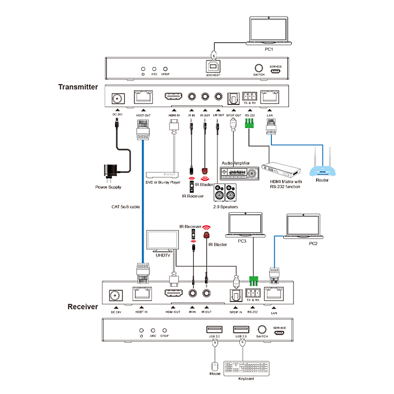 HDBaseT - 4K@60≥90米,1080P@60≥100米 HDMI - 4K@60≥5米,4K@30≥10米,1080P@60≥15米 |
