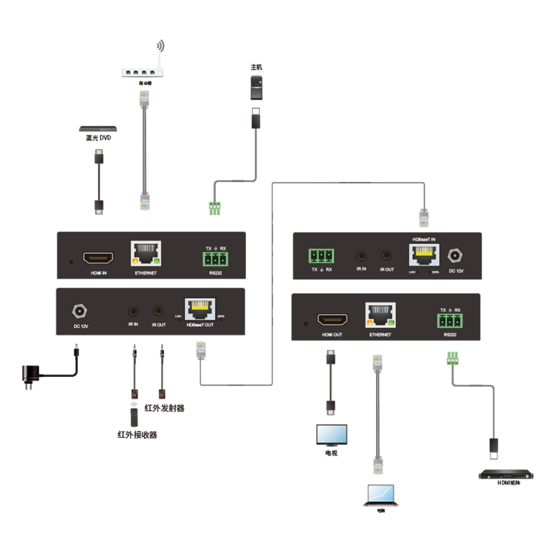 1*HDMI; 2*网口;1*IR输入接口;1*IR输出接口;1*凤凰端子 |